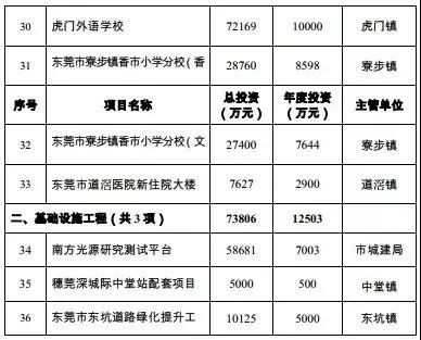 項目涉及濱海灣新區 、松山湖、中堂、石碣、洪梅、謝崗、南城、石排、厚街、寮步、東坑、塘廈、大朗、鳳崗、橫瀝、萬江、麻涌、莞城、虎門、道滘等鎮街(園區)。